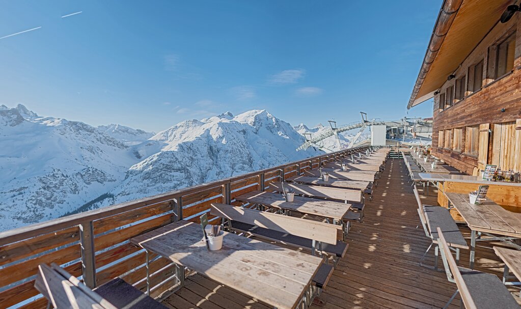 - Highlight: Die Außenterrasse mit grandiosem Ausblick ist die perfekte Après-Ski-Location im Frühjahr.