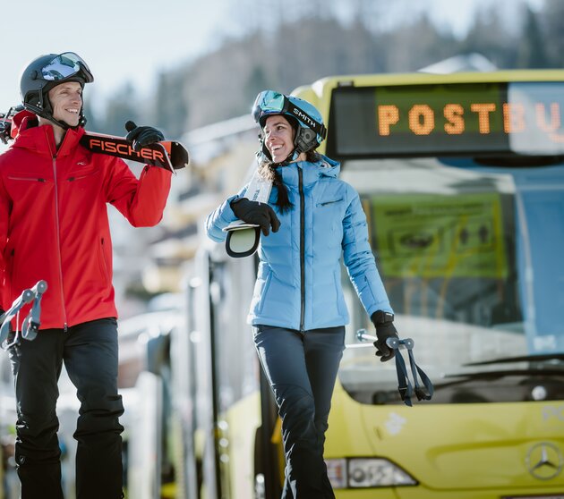 Once you arrive at the train station, you can continue your journey with the yellow post buses. They are subject to a charge and offer transport connections to the Lech Zürs ski resort.