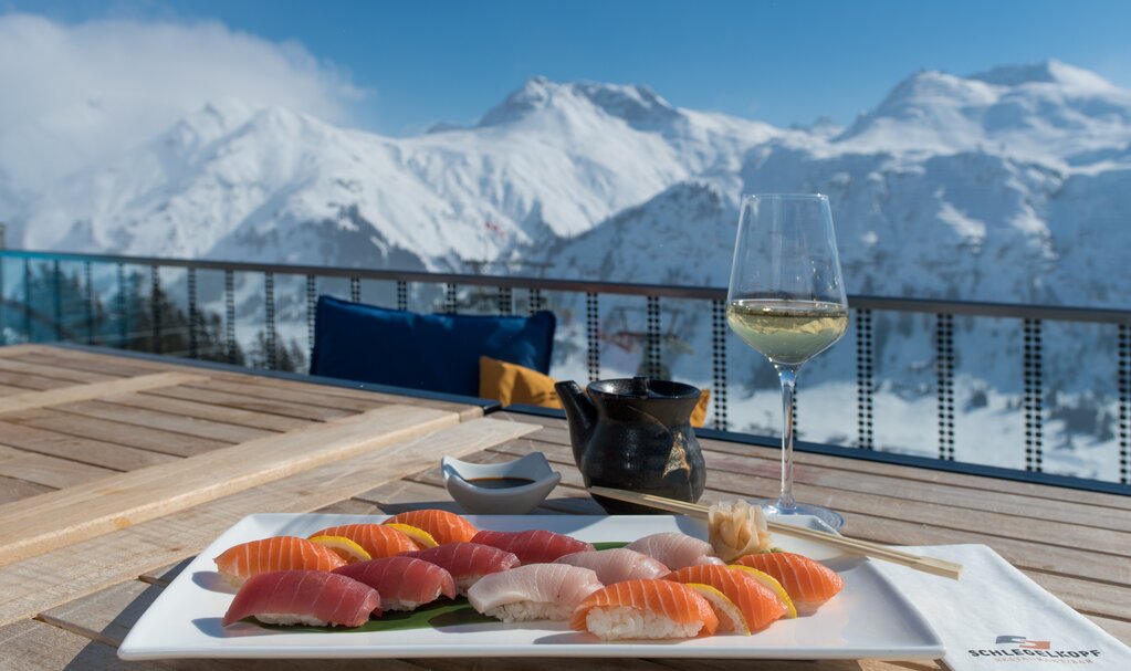 Auf herrlichen 1.800 Höhenmetern, mitten im Skigebiet und direkt neben der Bergstation Schlegelkopfbahn steht das Schlegelkopf Restaurant mit Bar und Panoramablick kulinarisch ganz im Zeichen der Lecher Partnerorte Hakuba-Happo, Beaver Creek und Kampen-Sylt. Saftige Steaks, Nordseekrabben, Sylter Austern oder zartes Sushi – es werden internationale Speisen gereicht. Zwei Besonderheiten warten ebenfalls auf alle Wintersportler: eine Johnnie-Walker-Whiskey-Lounge und ein Veuve-Clicquot-Champagner-Präsentationsraum. Fußgänger erreichen das Restaurant bequem mit der Schlegelkopfbahn.