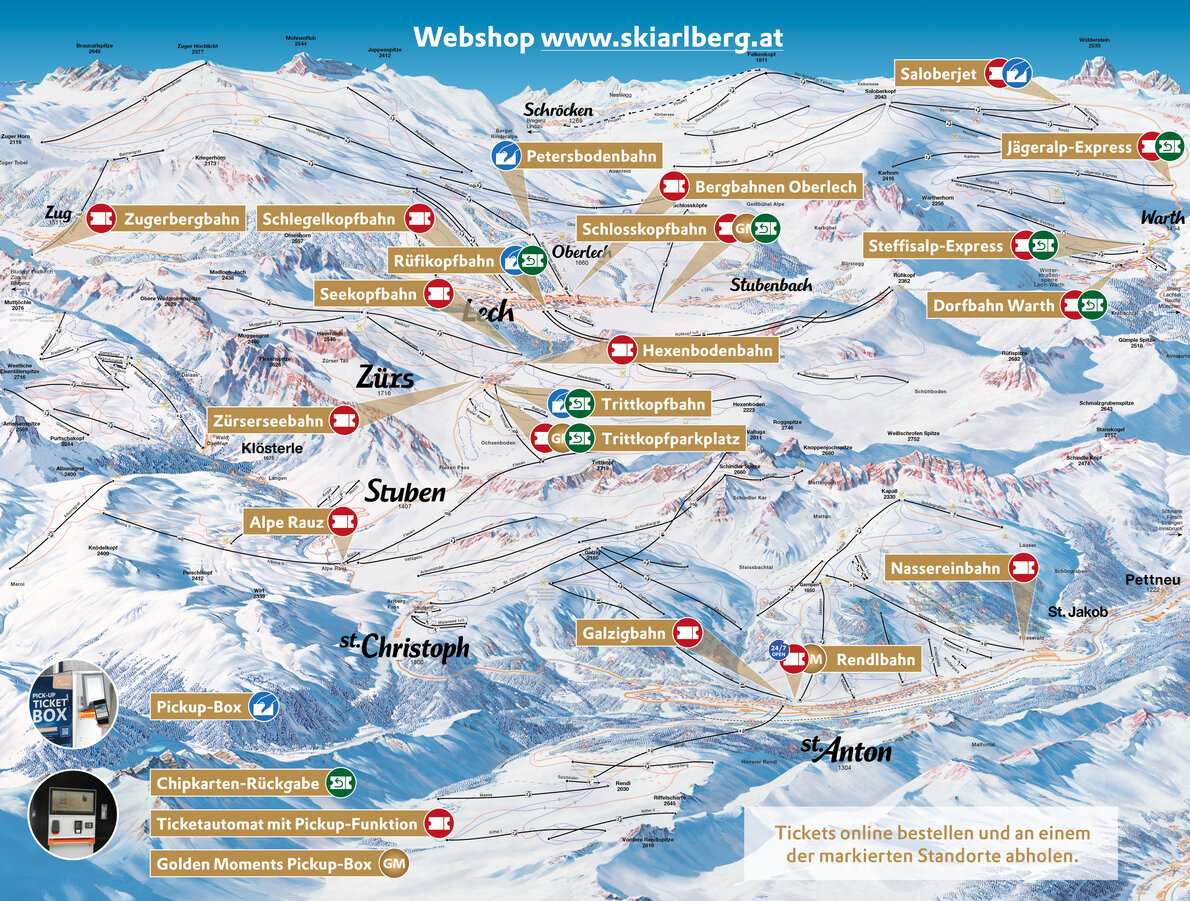 | Flexenbahn/Alpe Rauz | 08.00–16.45 Uhr | Tel: +43 5582 776 9563 |