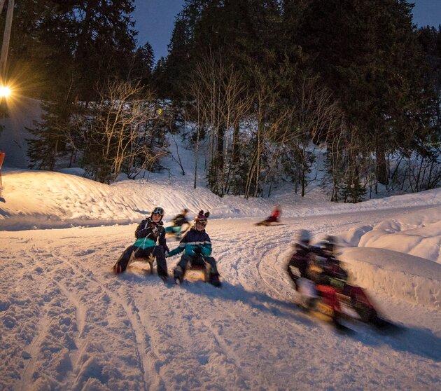 Bequem kann das Rodelabenteuer auch ohne Skipass bis 22:00 Uhr genutzt werden. Und dann geht es los – auf die Plätze, fertig und ab nach unten mit lautem Gelächter und jeder Menge Spaß!