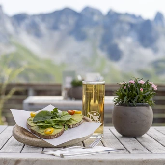 Hausgemachte Hüttenpizza, Kaiserschmarrn, frische Salate und alpine Klassiker – serviert mit Fernblick auf der Terrasse oder im stylischen Innenbereich.