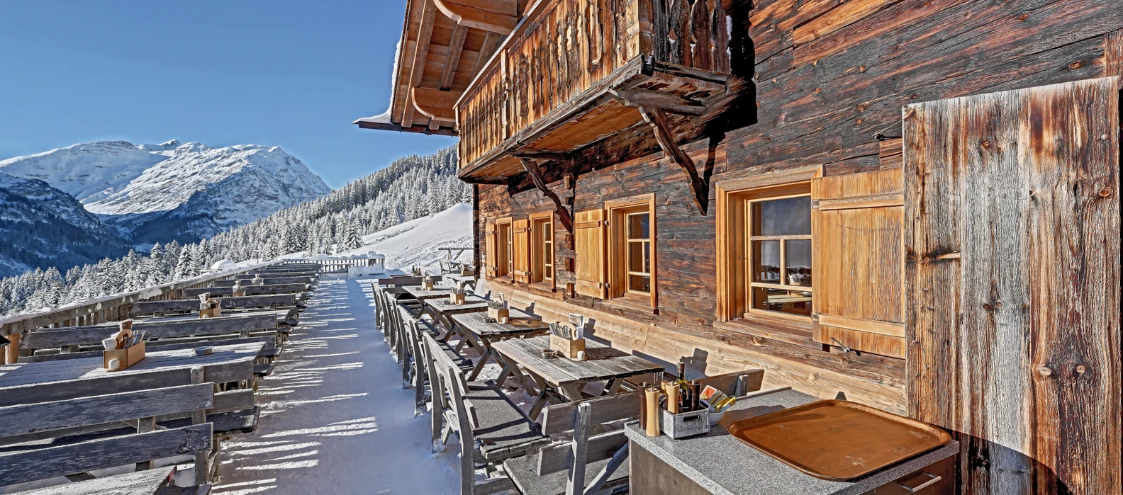 Auf 1.560 Metern Höhe verbindet die Rud-Alpe in Lech urige Gemütlichkeit mit ausgezeichneter Küche. Direkt an der Schlegelkopf-Skiabfahrt (200 / 201) gelegen, lädt die mehr als 250 Jahre alte Hütte zu genussvollen Momenten in besonderer Atmosphäre ein. Ob klassische Brettljause und Kaiserschmarren am Mittag oder stilvolle Hüttenabende bei Kerzenlicht.