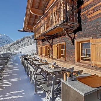 Direkt oberhalb von Lech gelegen, lädt die Rud-Alpe zur Einkehr mit Aussicht. Entspannen Sie nach dem Skitag auf der großen Sonnenterrasse oder beim stilvollen Après-Ski. Dazu passt das erlesene Weinangebot mit österreichischen Top-Winzern und internationalen Klassikern.