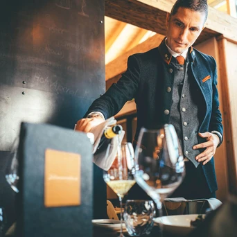 Altholz, Schindeln und Glas prägen das Bedienungsrestaurant Himmeleck von außen, innen punktet es mit Tiroler Gemütlichkeit. In den einladenden Stuben oder bei Schönwetter auf der herrlichen Sonnenterrasse servieren Valentino Schwarz und sein Team traditionelle regionale Köstlichkeiten, begleitet von einer großen Auswahl an vorwiegend österreichischen Weinen. Selbstverständlich darf nach echter Tiroler Tradition auch der himmlisch süße Abschluss nicht fehlen. Freuen Sie sich auf Ruhe und Genuss sowie echte Gastfreundschaft und reservieren Sie am besten rechtzeitig Ihren Tisch.