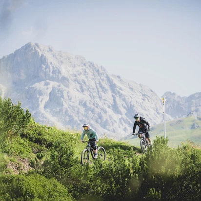 Nutzen Sie die idealen Bedingungen zum Mountainbiken in der Berglandschaft rund um St. Anton am Arlberg. Von Mitte Juni bis Anfang Oktober nutzen Biker die Sommer-Bergbahnen. Dadurch überwinden Sie steile Anstiege bequem und steigen direkt in abwechslungsreiche Bike-Touren ein. Sportliche Trails laden dazu ein, die alpine Landschaft aktiv zu erleben. Auf den Sonnenterrassen der Bergrestaurants warten nach der Tour kulinarischer Genuss und herrliche Ausblicke.