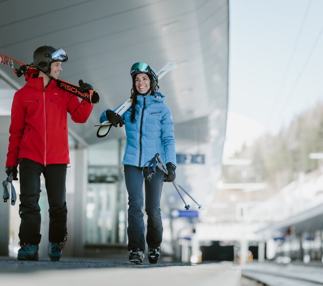 Once you arrive at the train station, you can continue your journey with the yellow post buses. They are subject to a charge and offer transport connections to the Lech Zürs ski resort.