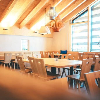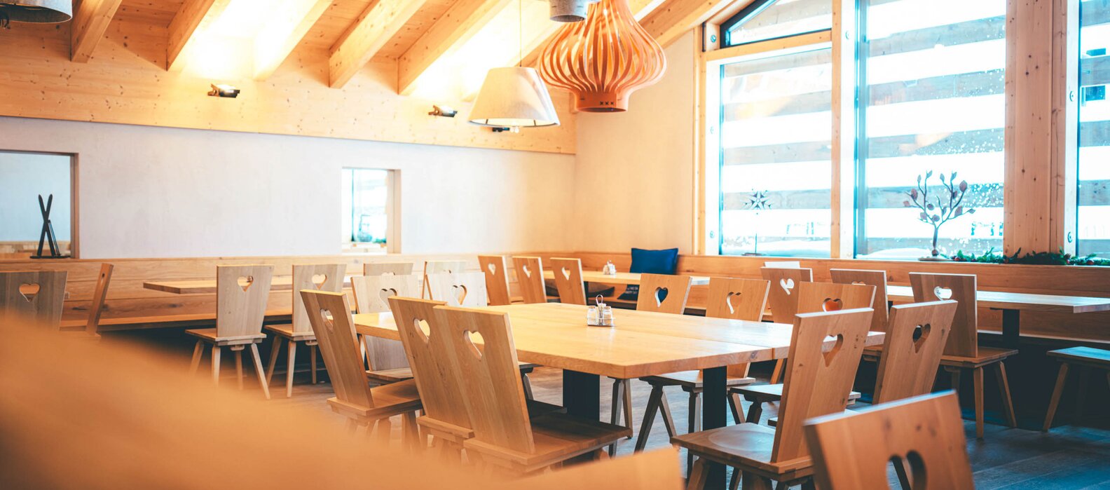 The Gampen restaurant is conveniently located close to the Gampen, Nassereinbahn and Kapallbahn lifts, as well as the practice area on the Gampen plateau. On sunny days, you can enjoy Tirolean specialities and traditional hut classics on the spacious terrace, or treat yourself to a drink in the stylish Gampen bar. It’s the perfect place for a quick and easy lunch break to recharge your energy. Inside, the restaurant offers plenty of seating across cosy parlours, ensuring a welcoming atmosphere whatever the weather.