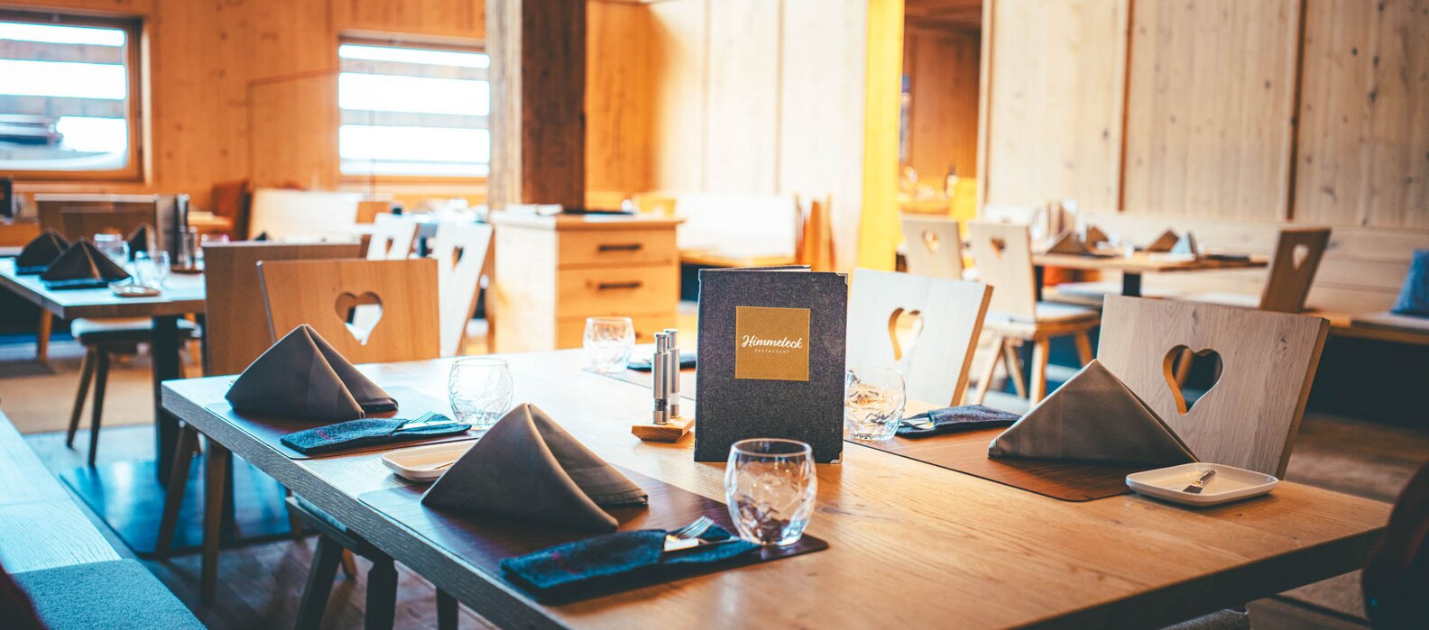 The à la carte restaurant Himmeleck is located in the middle of the sunny Gampen plateau. It is also easily reachable on foot from the Gampenbahn and Nassereinbahn cable cars.